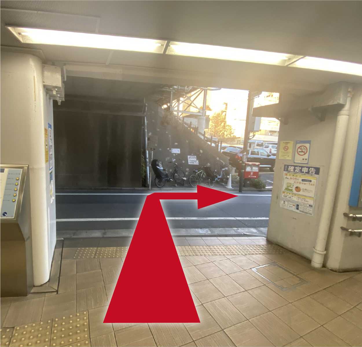 改札を出て右に曲がります。