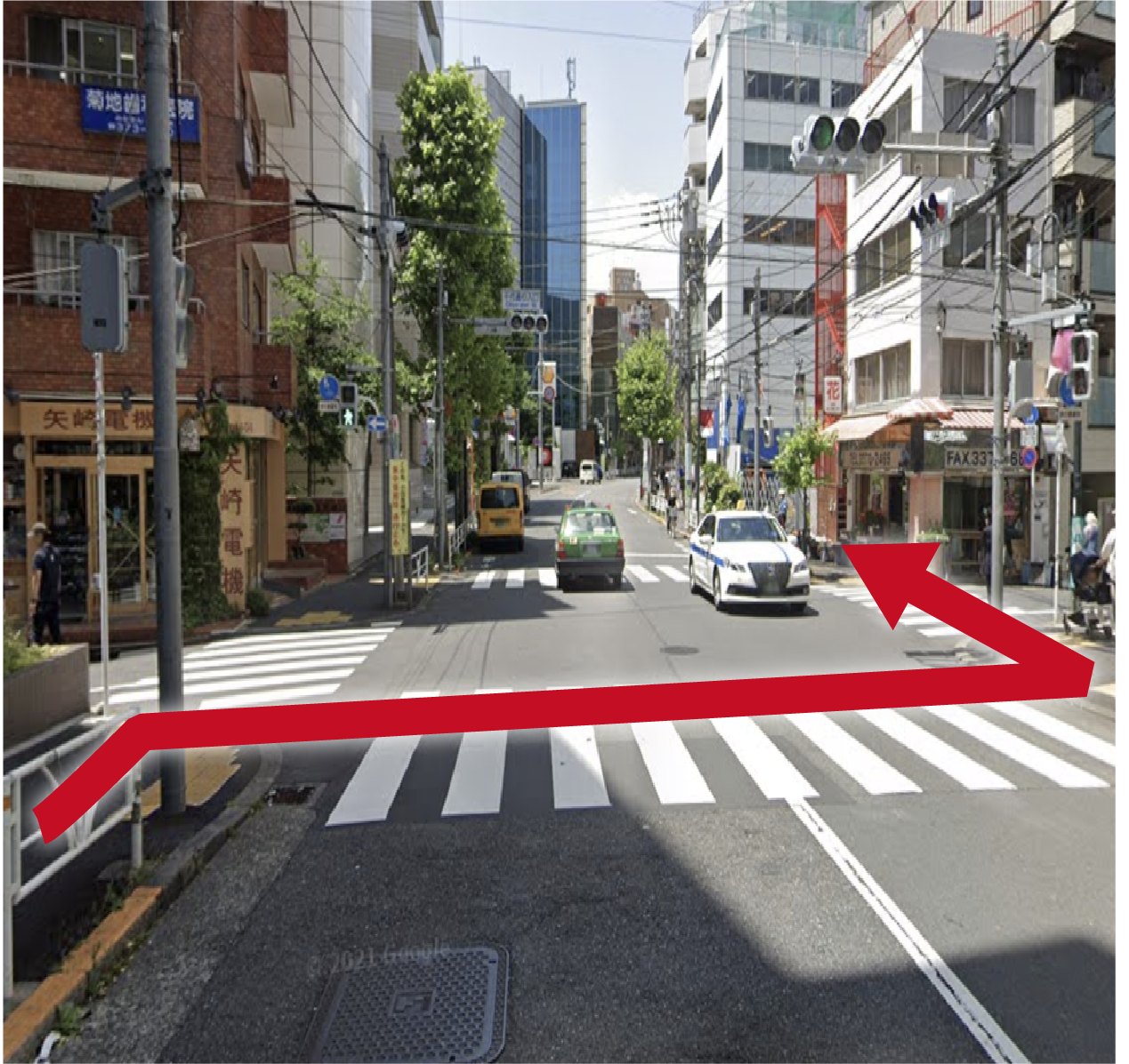 右に曲がったら直進します。